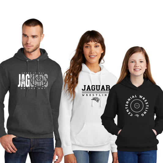 Adult, Ladies & Youth - (5 Designs) Premium Hooded Sweatshirt - (Centennial Jaguar Wrestling)