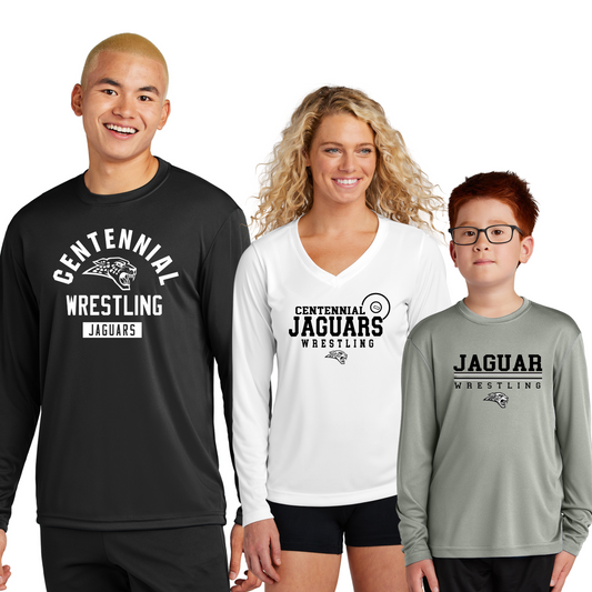 Adult, Ladies & Youth - (5 Designs) Dri Fit Long Sleeve Tee (Centennial Jaguar Wrestling)