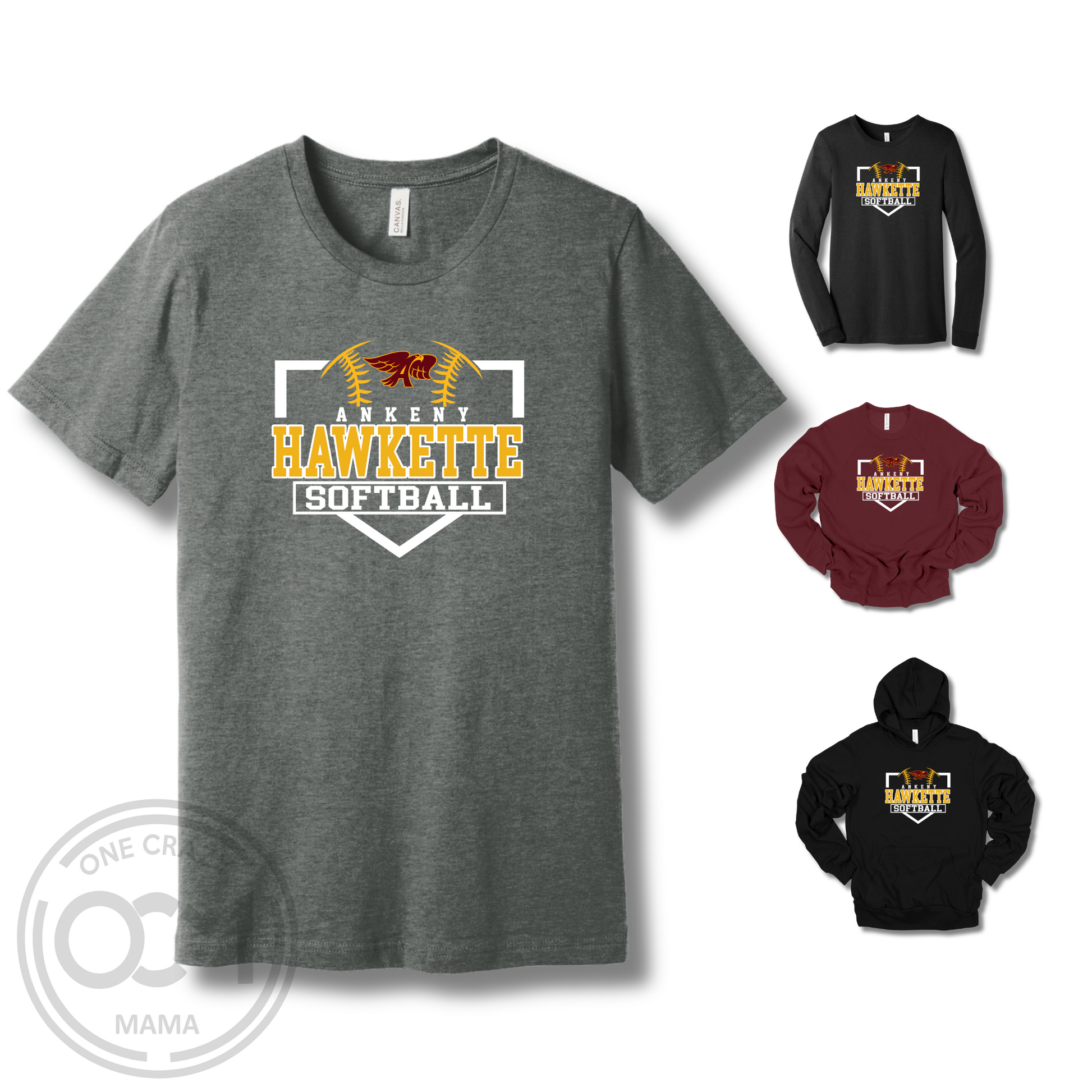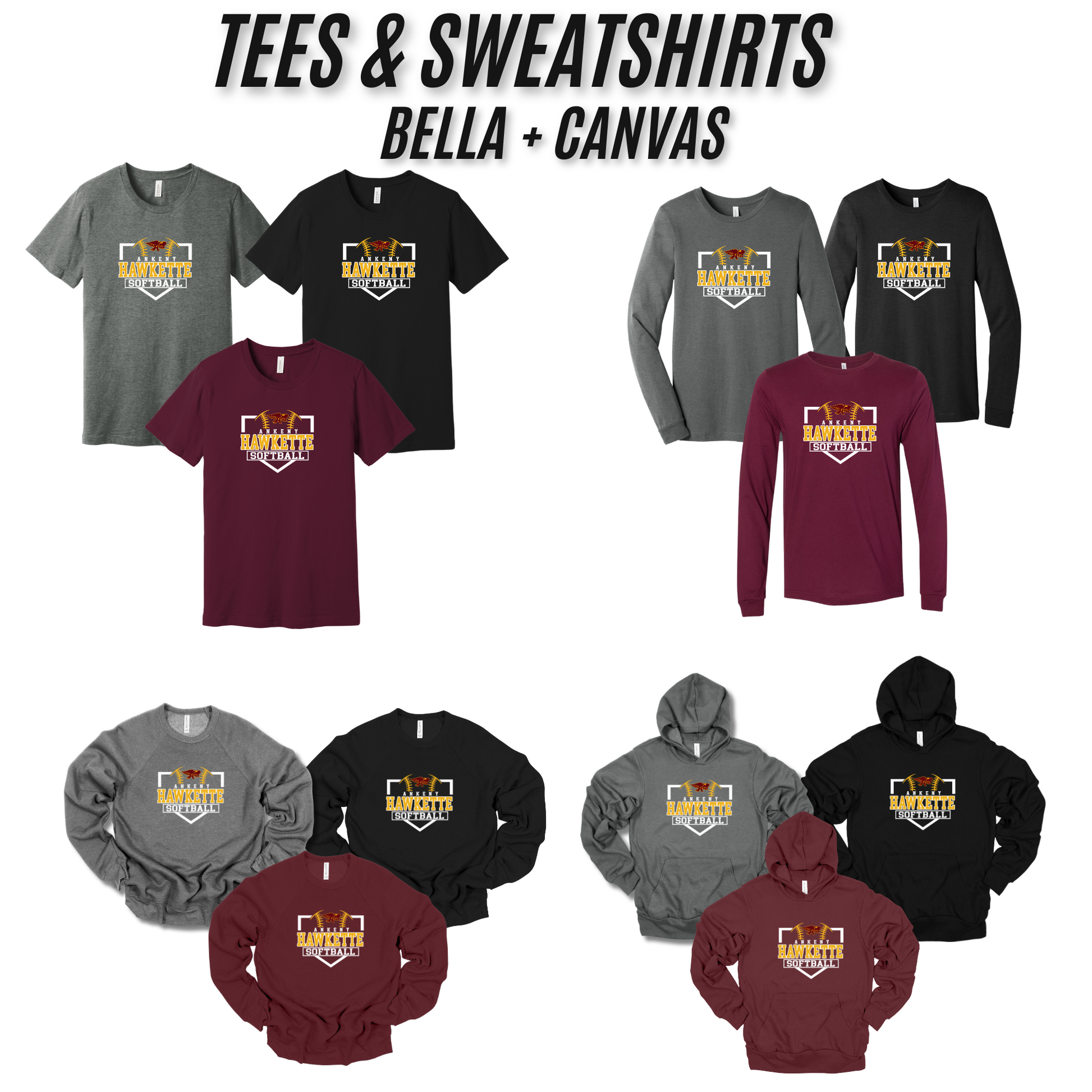 Elevate your Ankeny Hawkette Softball spirit with our ultra-comfy Bella+Canvas collection! Choose your perfect match: breezy unisex tee, cozy long sleeve, classic crewneck sweatshirt, or snuggly hoodie. Each piece delivers that legendary Bella+Canvas softness while you cheer on your favorite team. Game day just got more comfortable!