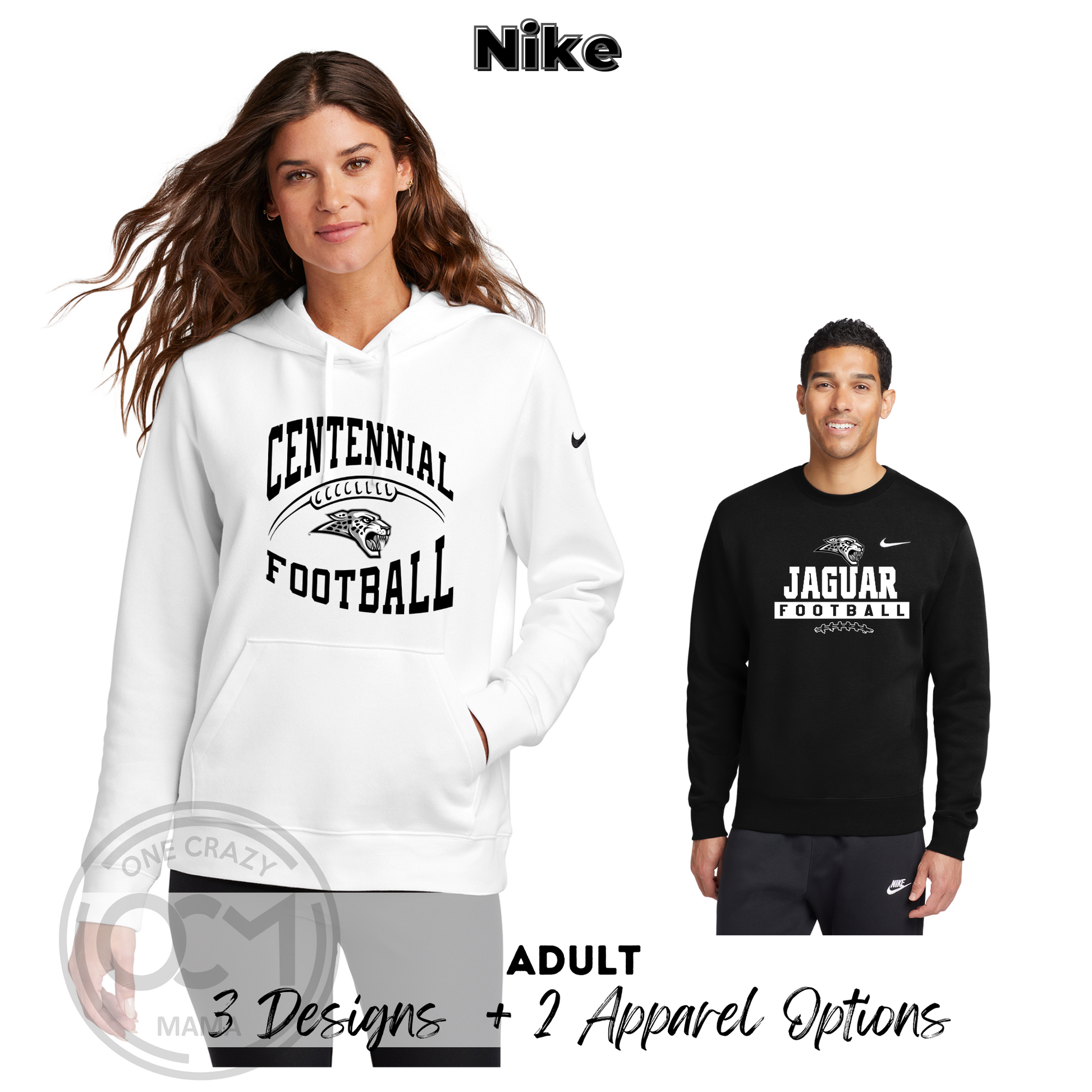 Step up your spiritwear game with premium comfort and iconic Nike style! This official Centennial Jaguar Football gear features 3 full-front bold graphic designs or 3 left-chest logo styles, available in 4 classic colors – Black, White, Grey, and Dark Grey.