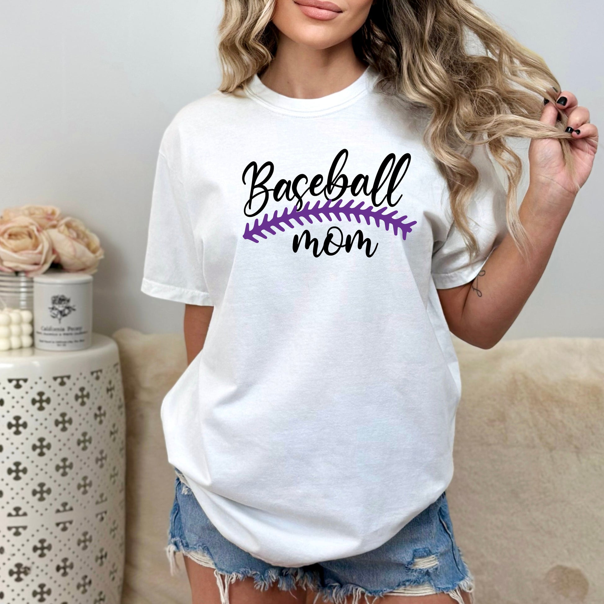 Baseball Mom (You pick the lace color)- Comfort Colors Garment-Dyed Tee