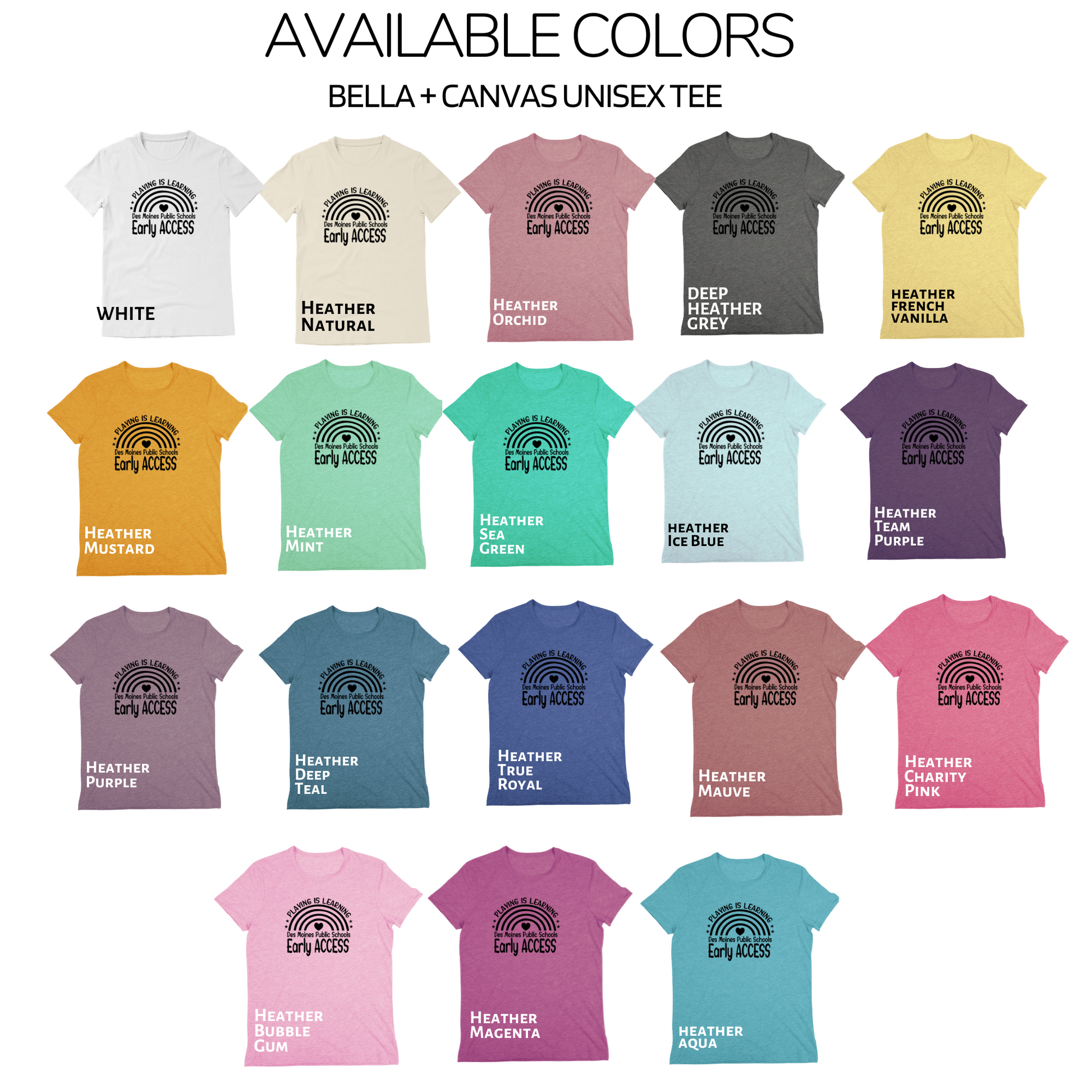 Celebrate the heart of early childhood education with this soft and stylish Bella+Canvas unisex tee, designed especially for Des Moines Public Schools' Early Access staff.