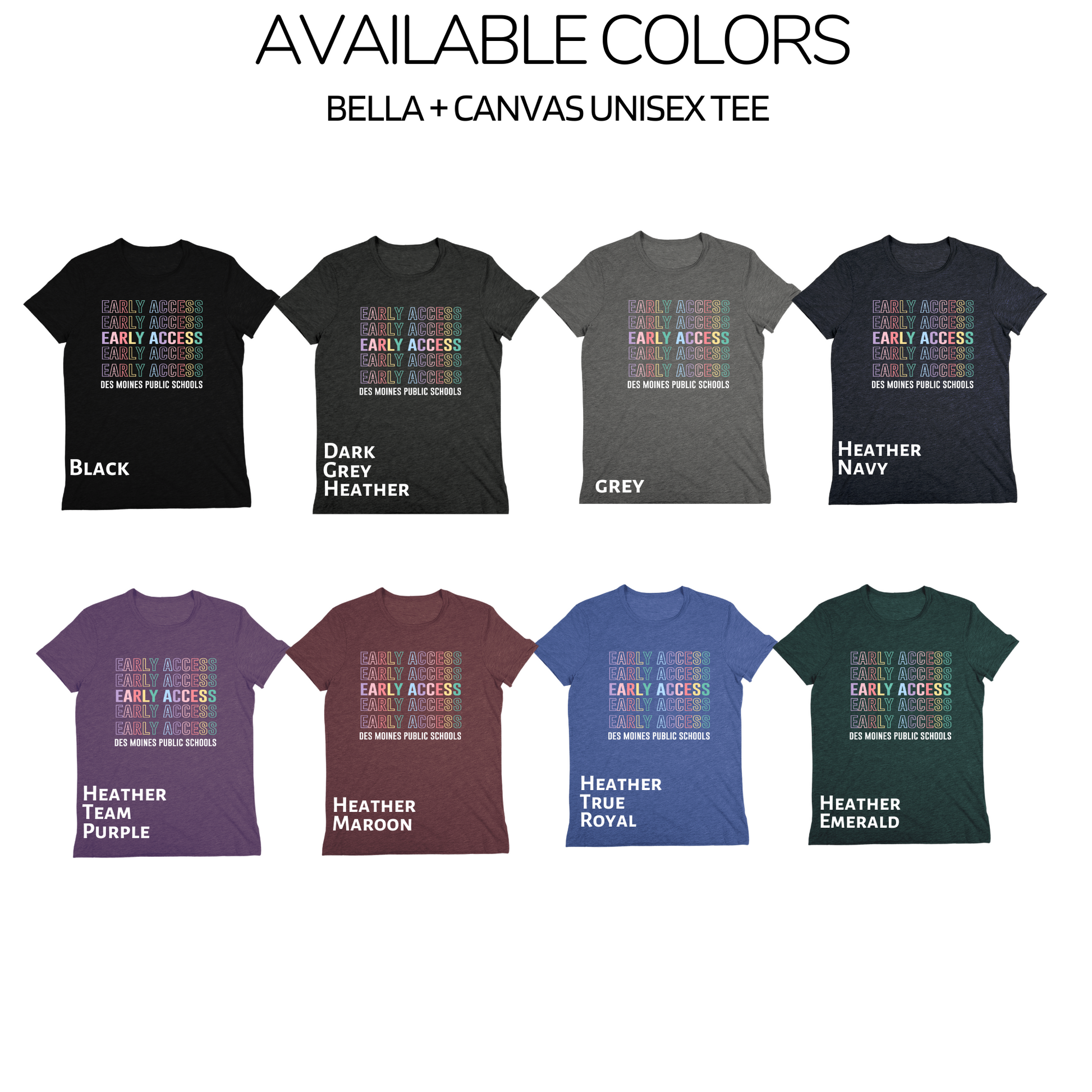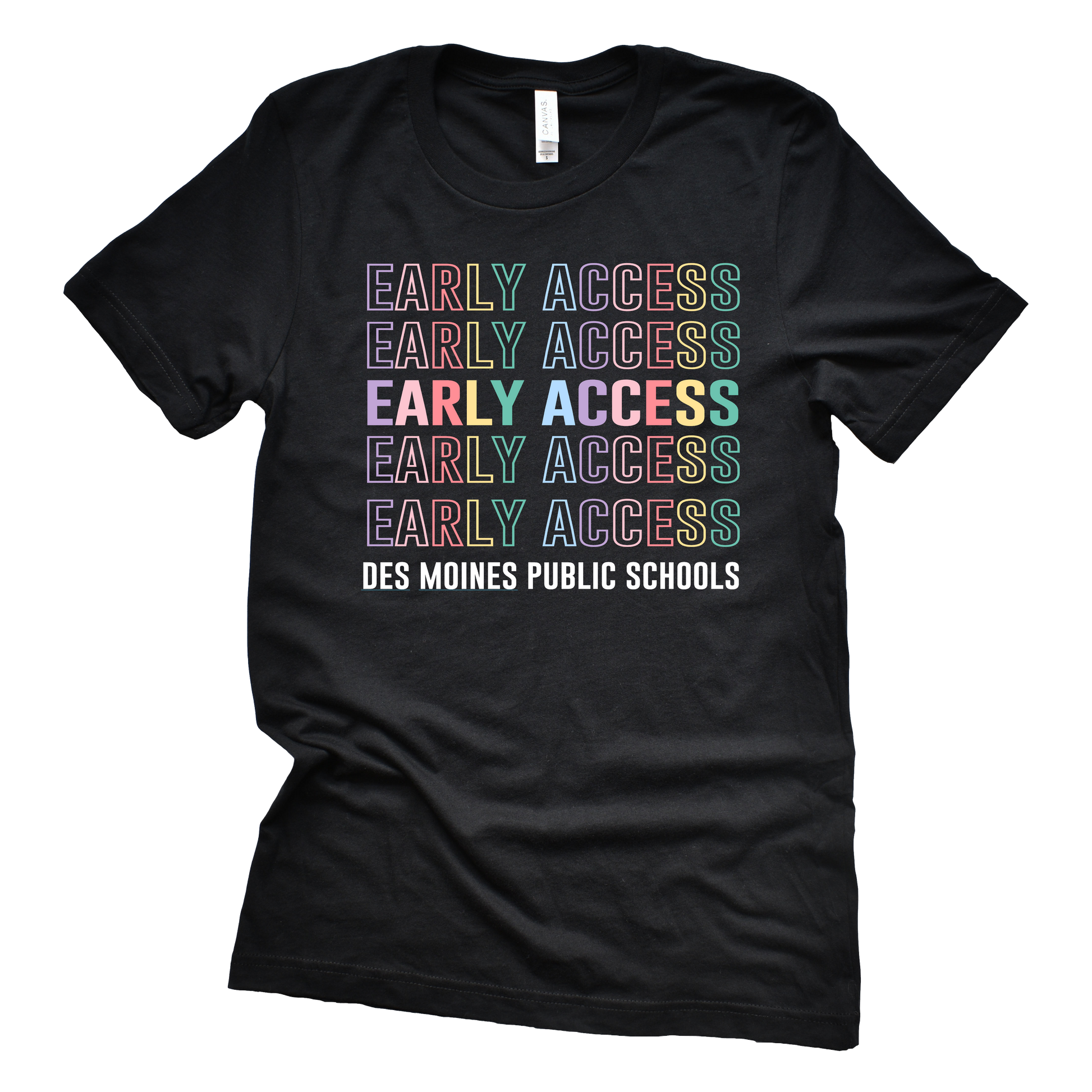 Brighten your day with soft colors and strong purpose in this Bella+Canvas unisex tee, designed just for Des Moines Public Schools' Early Access staff.