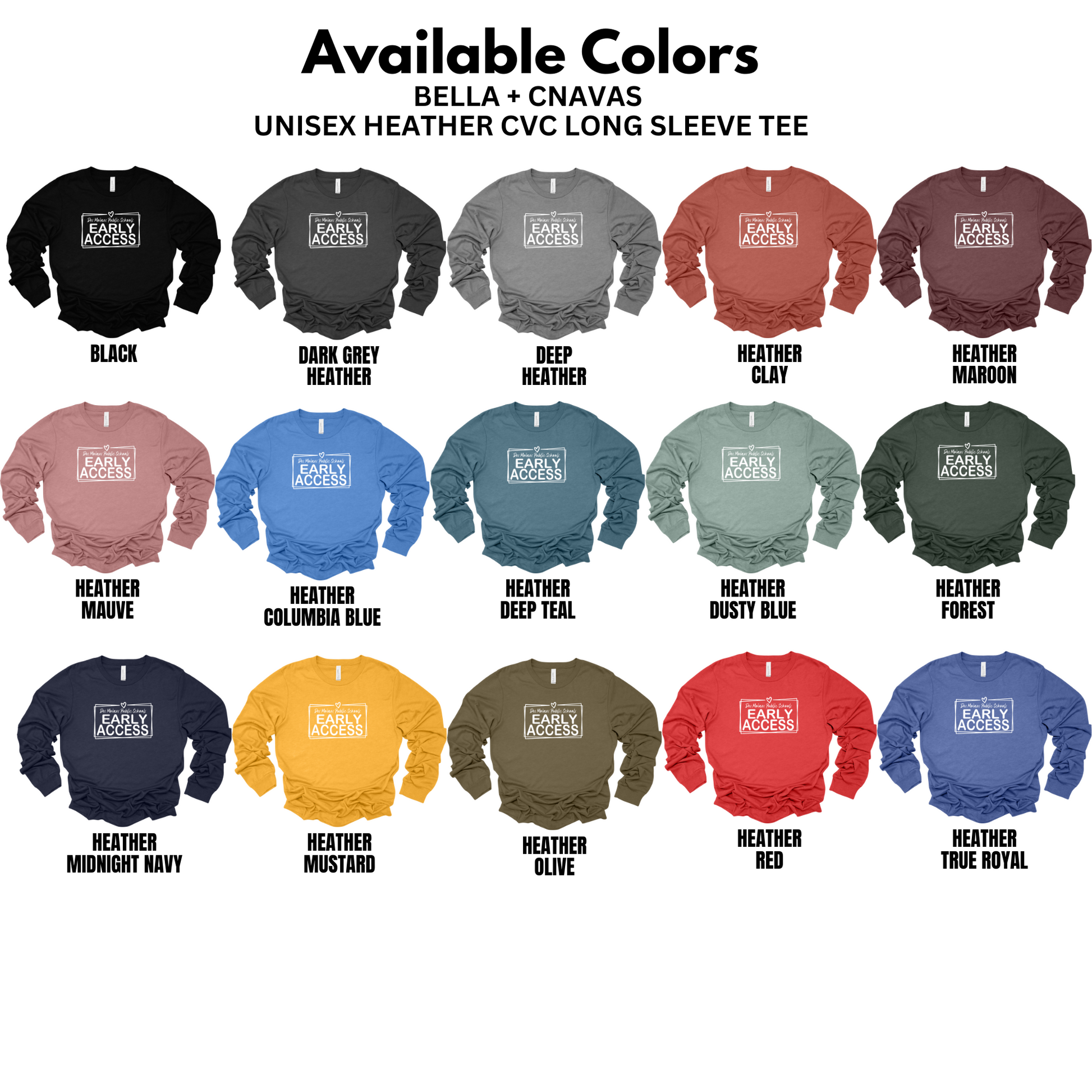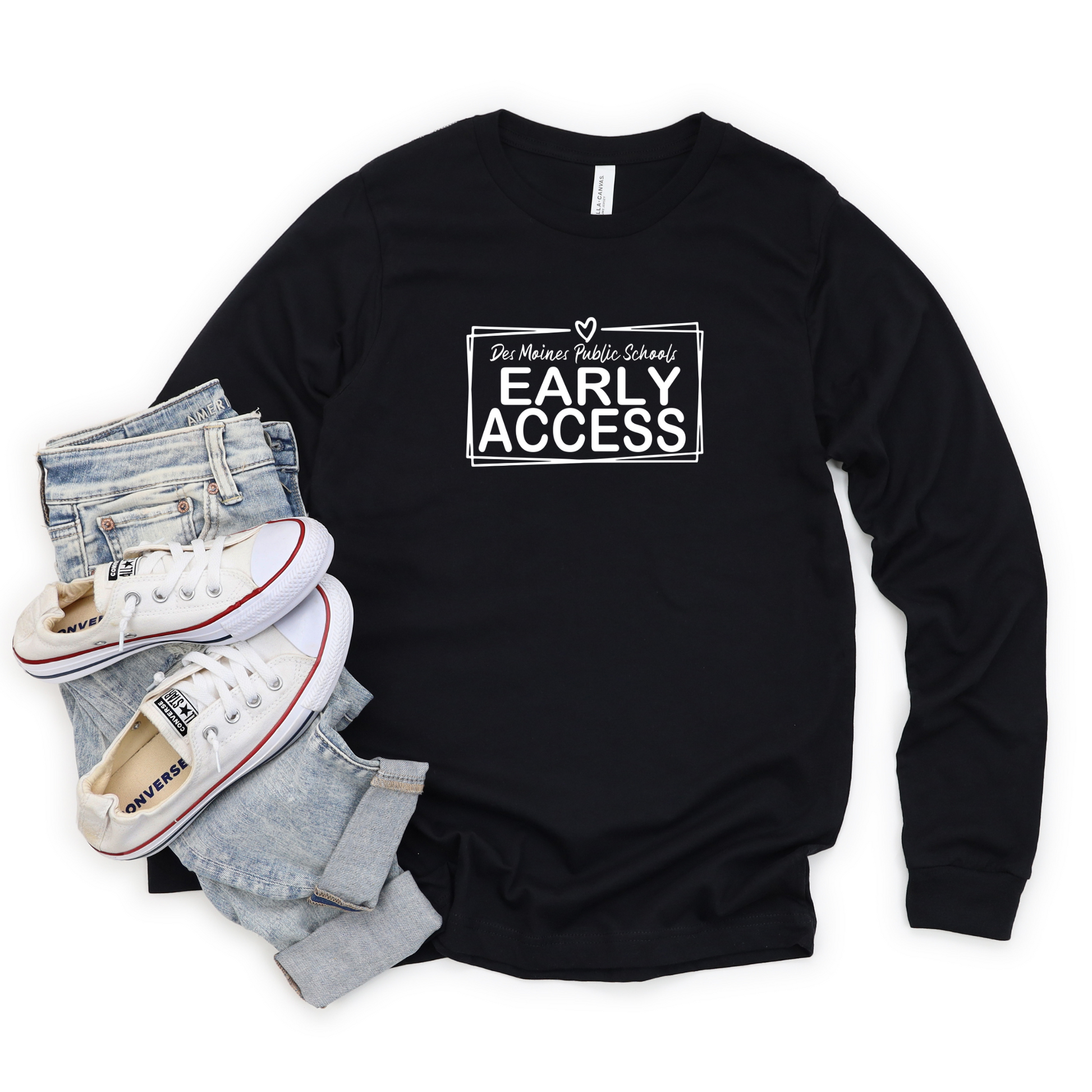 Created especially for the dedicated staff of Des Moines Public Schools' Early Access program, this Bella+Canvas unisex long sleeve tee brings comfort, style, and purpose together.